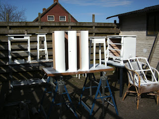 Ik houd van de oude ge- en doorleefde sfeer van oude spullen en meubeltjes, vind het heerlijk om es flink met de kwast er tegen aan te gaan, nieuw beslag erop en je hebt een heel ander meubelstuk, kastjes, tafeltjes, stoelen, wandrekjes, heb al veel onder handen gehad.
